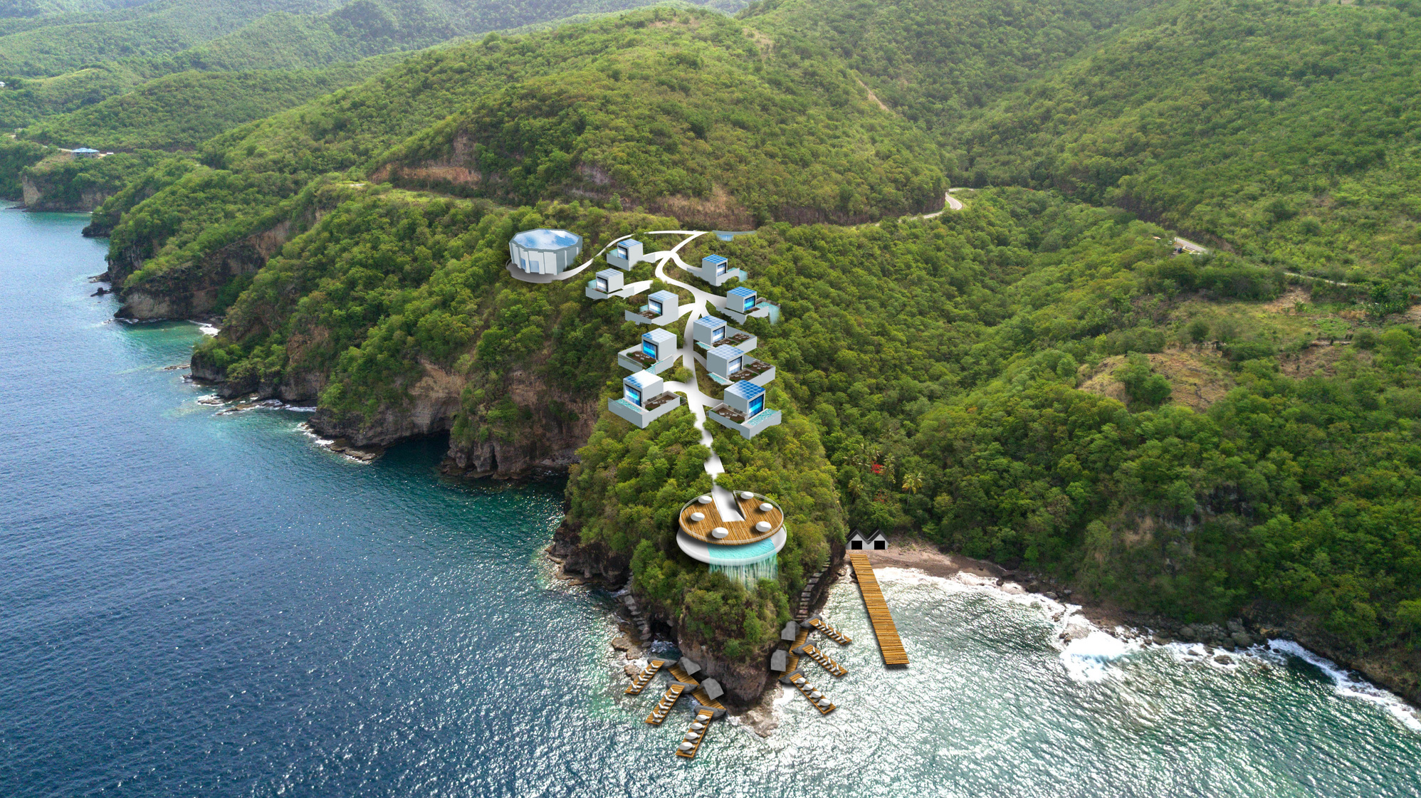 Rare coastal property available with access to private beach and boasting 180 degree views of Dominica’s western coastline.